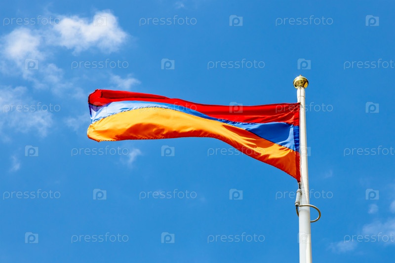 Государственный флаг Армении и голубое небо на заднем плане