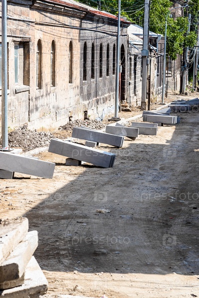 Ремонт дороги на улице в старом районе Гюмри