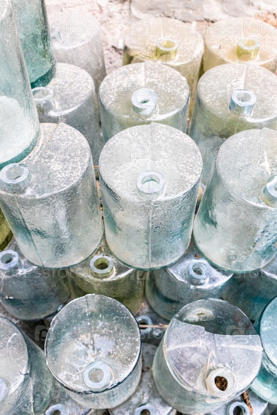 Заготовки стеклянных сосудов для изготовления бутылок крупным планом