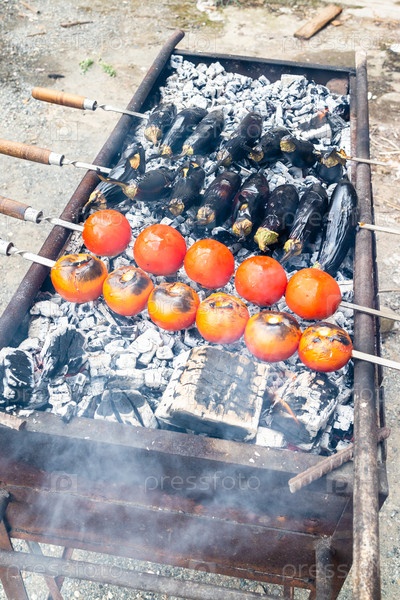 Овощи на гриле на открытом мангале