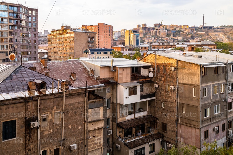 Жилые дома в городе Ереван на закате