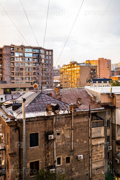 Многоквартирные дома в городе Ереван на закате