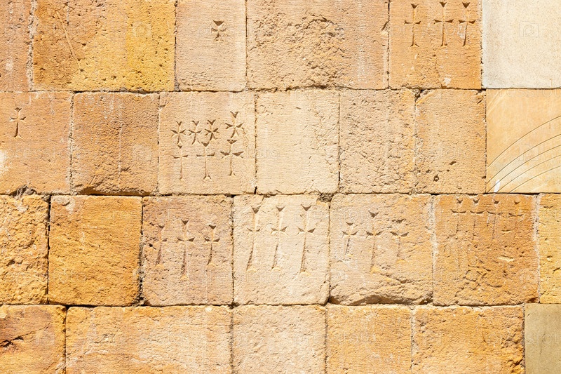 Внешняя стена церкви с резными памятными крестами