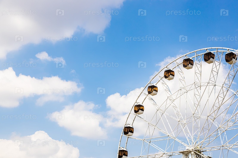 Колесо обозрения и голубое небо с белыми облаками