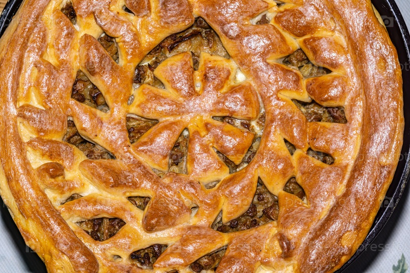 Домашний мясной пирог крупным планом