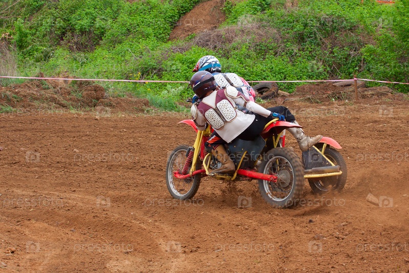 Команда по мотокроссу с коляской на трассе