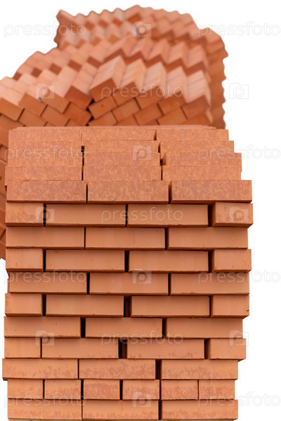 Штабеля нового красного керамического кирпича, уложенные на деревянные поддоны