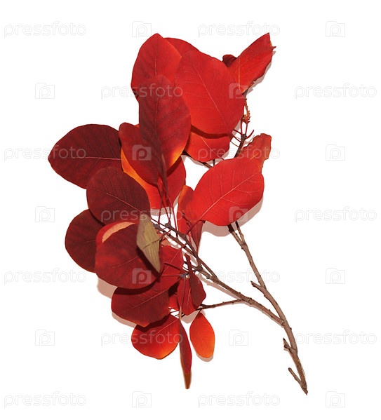 Красно-бордовая ветка барбариса, выделенная на белом фоне. Кустарник для декоративного сада, элемент дизайна. Текстура или фон