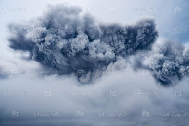 Поднимающееся облако серого вулканического дыма. Текстура или фон