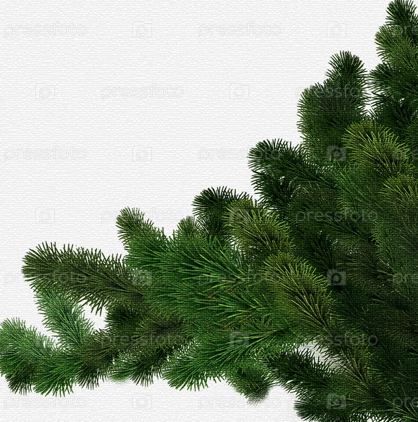 Текстура фона большой зеленой еловой ветки на светлом шероховатом фоне