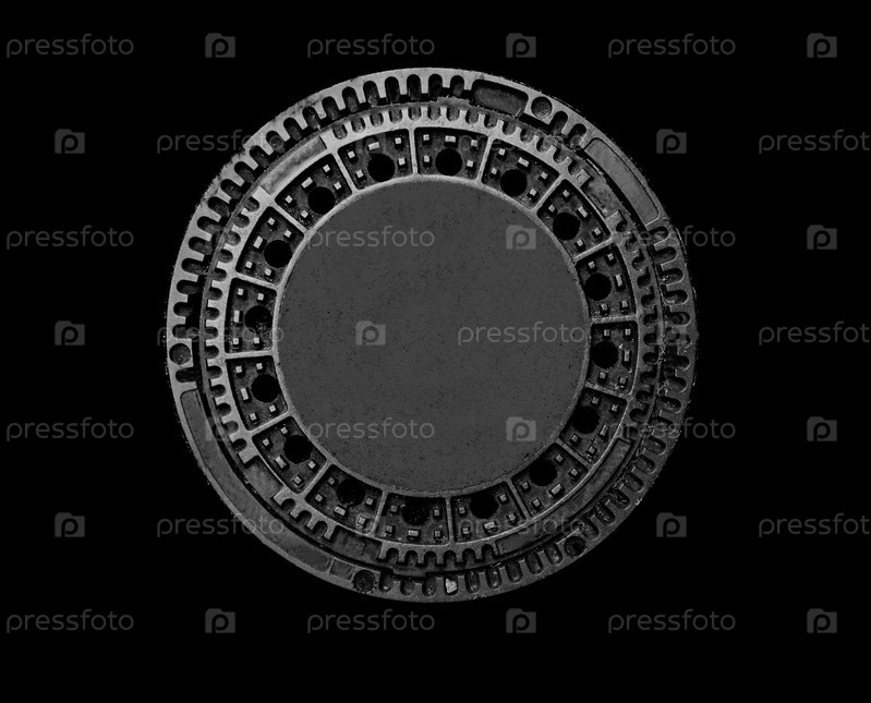 Металлический канализационный люк на черном фоне