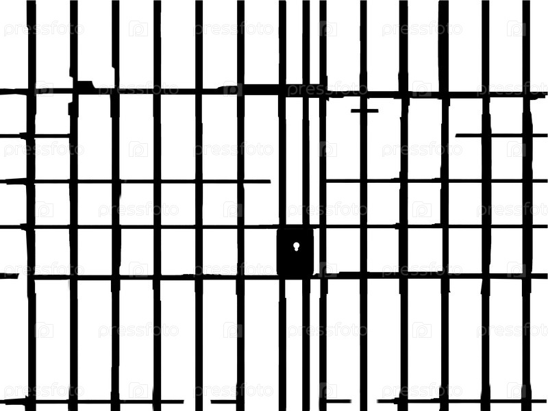 Старая тюремная камера с замком в центре на белом фоне