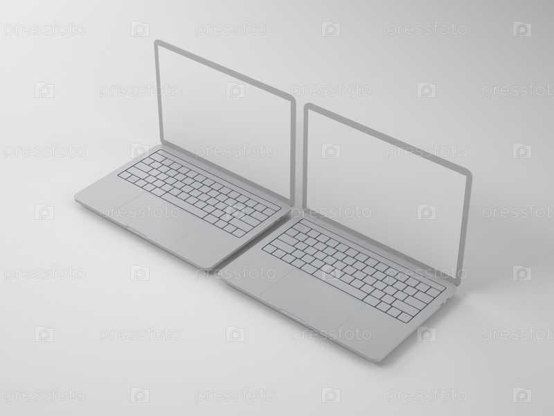 Два открытых современных серых ноутбука с пустыми экранами на светлом фоне
