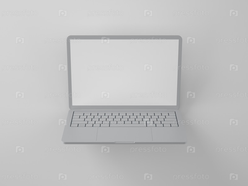 Открытый современный серый ноутбук с пустым экраном на светлом фоне