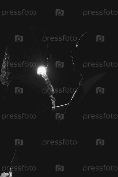 Темный силуэт танцующих молодоженов