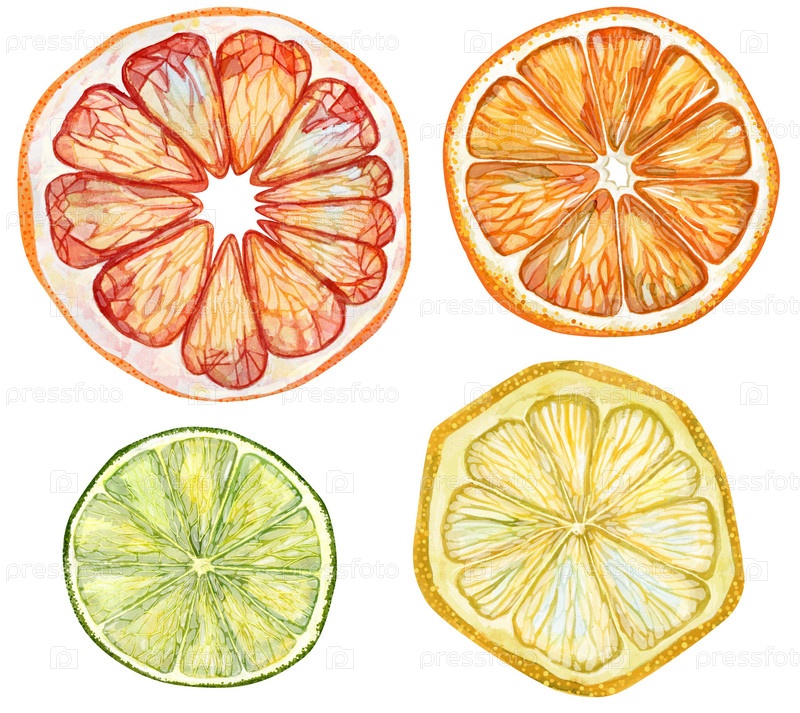 Набор сушеных цитрусовых долек. Акварельная иллюстрация