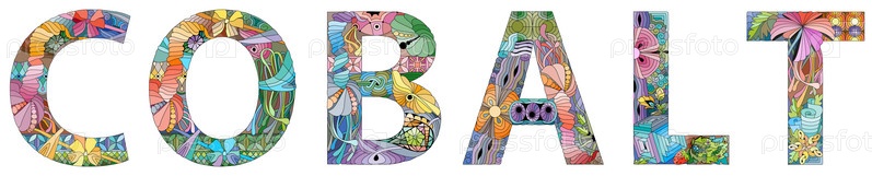 Слово КОБАЛЬТ. Векторный зентангл-объект для декора