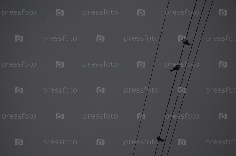 Птицы на проводах в тумане