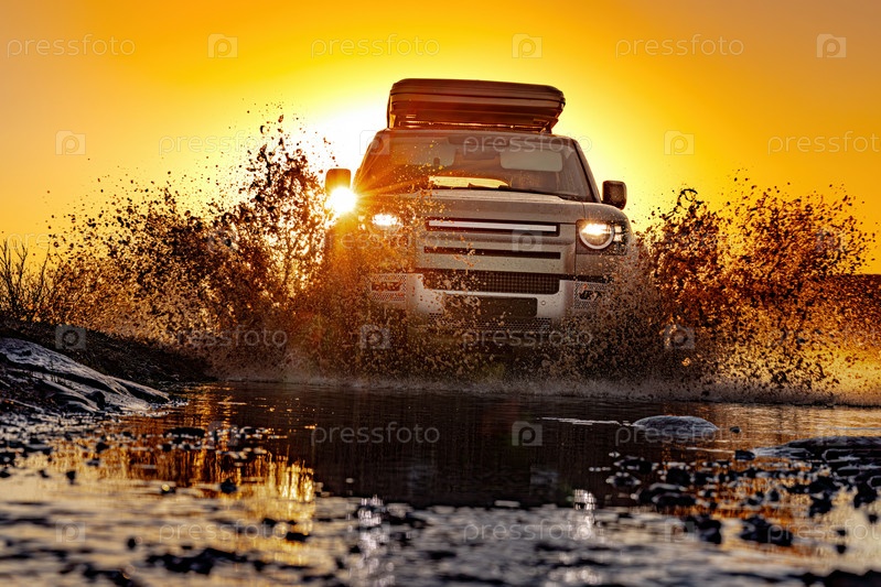 Внедорожные туристические поездки на автомобиле по бездорожью в горной местности. Экспедиционные путешествия и отдых, приключения в отдаленных районах