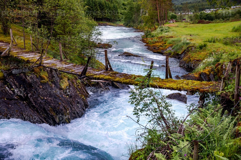 Подвесной мост через горную реку, Норвегия
