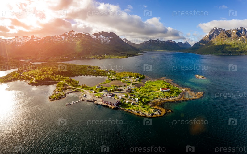 Прекрасная природа Норвегии Вид с воздуха на кемпинг для отдыха