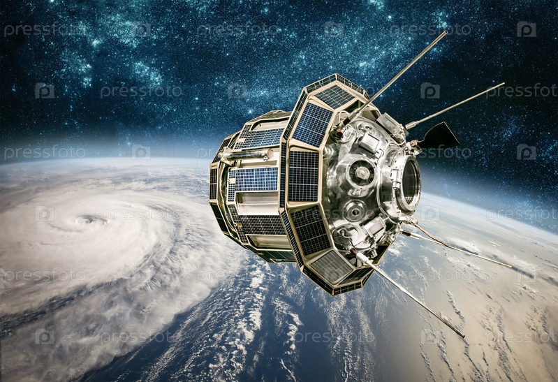 Космический спутниковый мониторинг с околоземной орбиты, погода из космоса, ураган, тайфун на планете Земля
