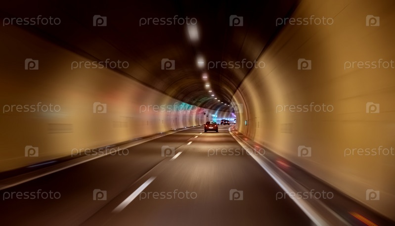 Автомобиль едет через туннель, вид с вождения