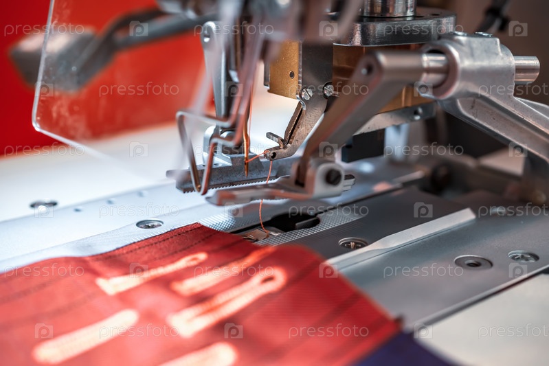 Профессиональная швейная машина крупным планом. Современная текстильная промышленность
