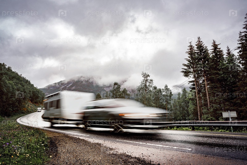 Автомобиль VR Caravan едет по шоссе