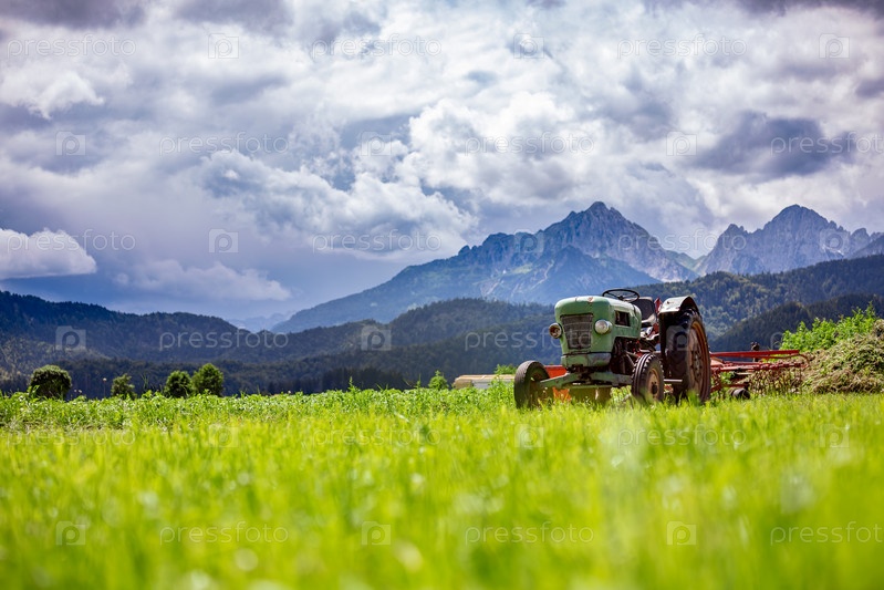 Старый трактор на альпийских лугах