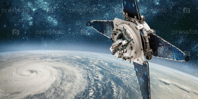 Космический спутниковый мониторинг с околоземной орбиты, погода из космоса, ураган, тайфун на планете Земля