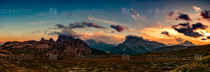 Панорама национального природного парка Тре Чиме в Доломитовых Альпах. Прекрасная природа Италии