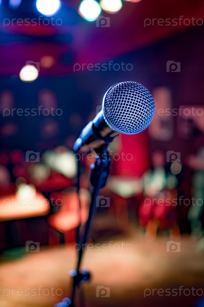 Микрофон на сцене на фоне зрительного зала