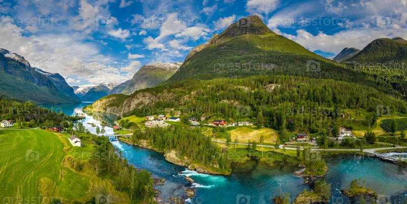Панорама озера Ловатнет Прекрасная природа Норвегии