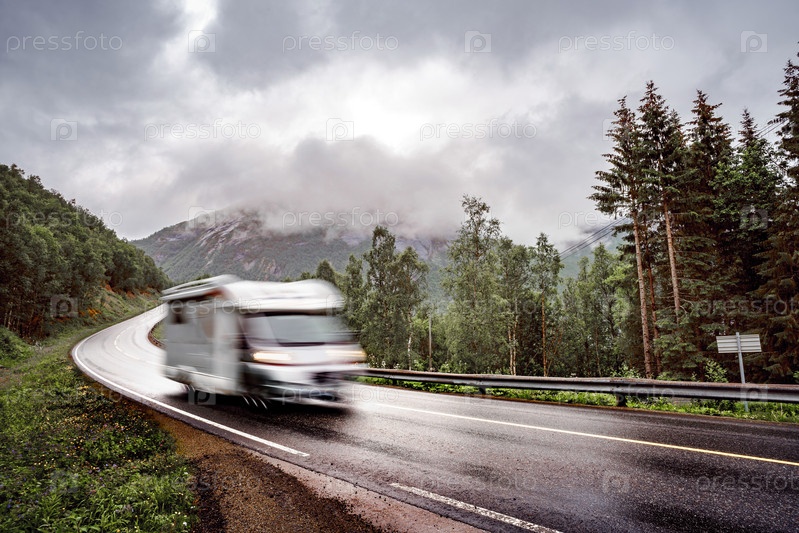 Автомобиль VR Caravan едет по шоссе