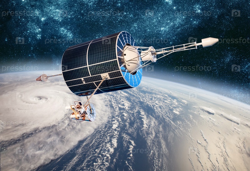 Космический спутниковый мониторинг с околоземной орбиты, погода из космоса, ураган, тайфун на планете Земля