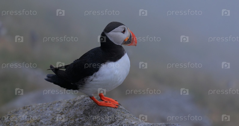 Атлантический тупик (Fratercula arctica) на скале на острове Рунде, Норвегия