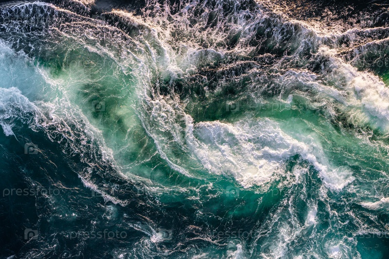 Голубые волны воды реки и моря встречаются друг с другом во время прилива и отлива