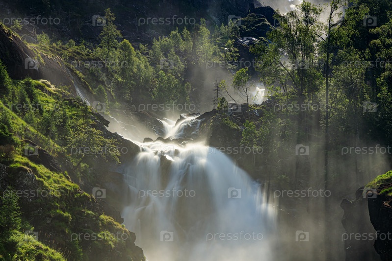 Водопад Латефоссен Одда Норвегия. Латефоссен — мощный двойной водопад