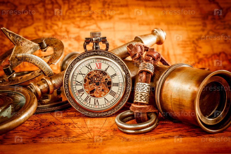 Винтажный натюрморт. Винтажные предметы на старинной карте