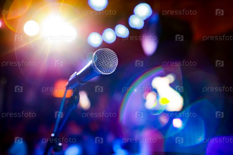 Микрофон на сцене на фоне зрительного зала