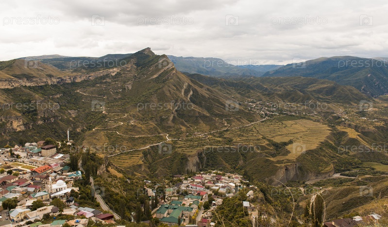 Кавказские горы. Дагестан. Вид с самой верхней точки селения Гуниб