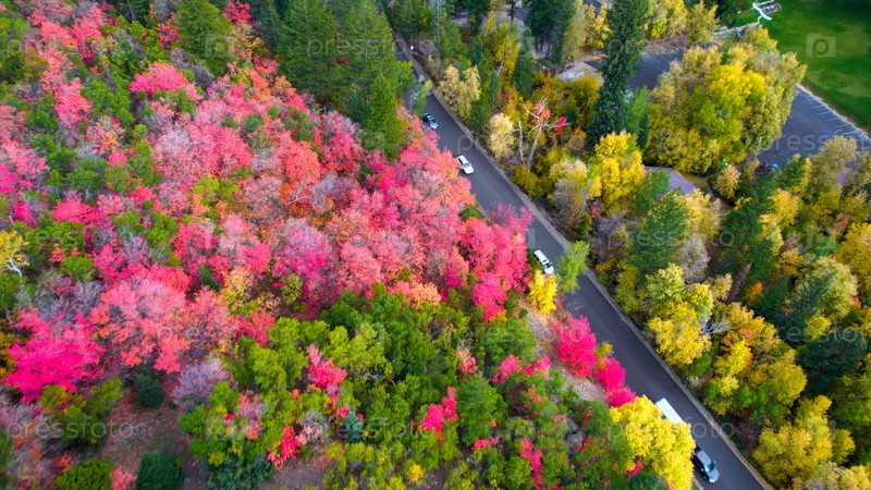 лес вдоль дороги осенью