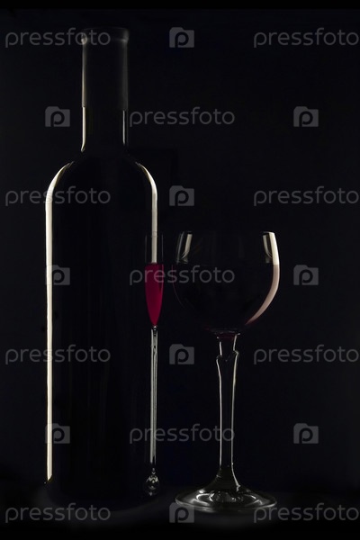 Бутылка и бокал с красным вином