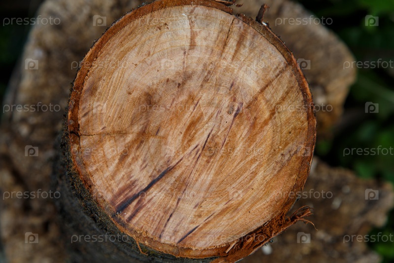 Спил вишневый ствол Sawn cherry tree trunk and axe