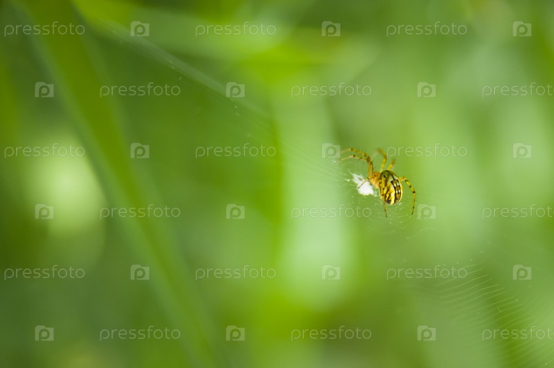 Маленький желтый паук в паутине