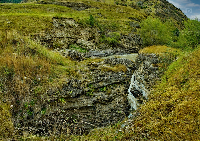 Россия. Кабардино-Балкария. Вид горную реку Малка с мутными от таяния высокогорных ледников Северного Кавказа