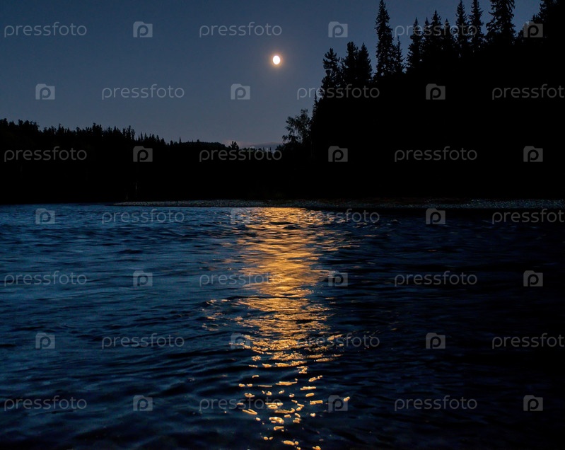 Россия. Западный Саян, лунная ночь на реке Казыр