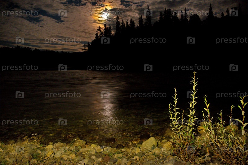 Россия. Западный Саян, лунная ночь на реке Казыр