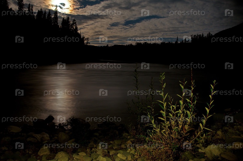Россия. Западный Саян, лунная ночь на реке Казыр